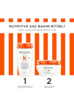 SET İÇERİĞİ:Nutritive Bain Satin Riche 250MLNutritive Masquintense 200MLNutritive Bain Satin Riche 250MLÇok kuru saçlar için yoğun besleyici bir şampuandır.; Yoğun beslenme ve güç sağlayan kuruluk önleyici polimerler içerir, bu da onu çok kuru saçlar için en iyi şampuanlardan biri yapar.; Ayrıca, ağırlaştırmayan bir sonuç için kuru saçı besleyen ve güçlendiren temel besinleri içerir.; Yüksek besleyici formül, nem sağlarken kuru saçı derinlemesine temizler ve onarır.; Bain Satin Riche, köpüren nazik yapılı & beyaz kremsi jel dokusuna sahiptir, bu da onu kaşıntılı saç derisi ve çok kuru saçlar için en iyi şampuanlardan biri yapar.; Nutritive Masquintense 200MLÇok kuru, ince ve orta telli saçlar için derinlemesine besleyici, ultra-konsantre bir saç maskesidir.; Kuru, yıpranmış saçlar için en iyi saç maskelerinden biri olan bu maske, formülün saçı besleme ve güçlendirme yeteneğini artıran bitki bazlı proteinler ve niasinamid içerir.; Masquintense, saçı derinlemesine güçlendirmek ve beslemek için güçlü bir dozda konsantre besin sağlar.; Masquintense’in hafif beyaz kremsi dokusu ince telli saçlar için ideal bir saç maskesidir.; Cilt Tipi:Tüm Saç Tipleri Cinsiyet:UNISEX Yaş Grubu:UNISEX
